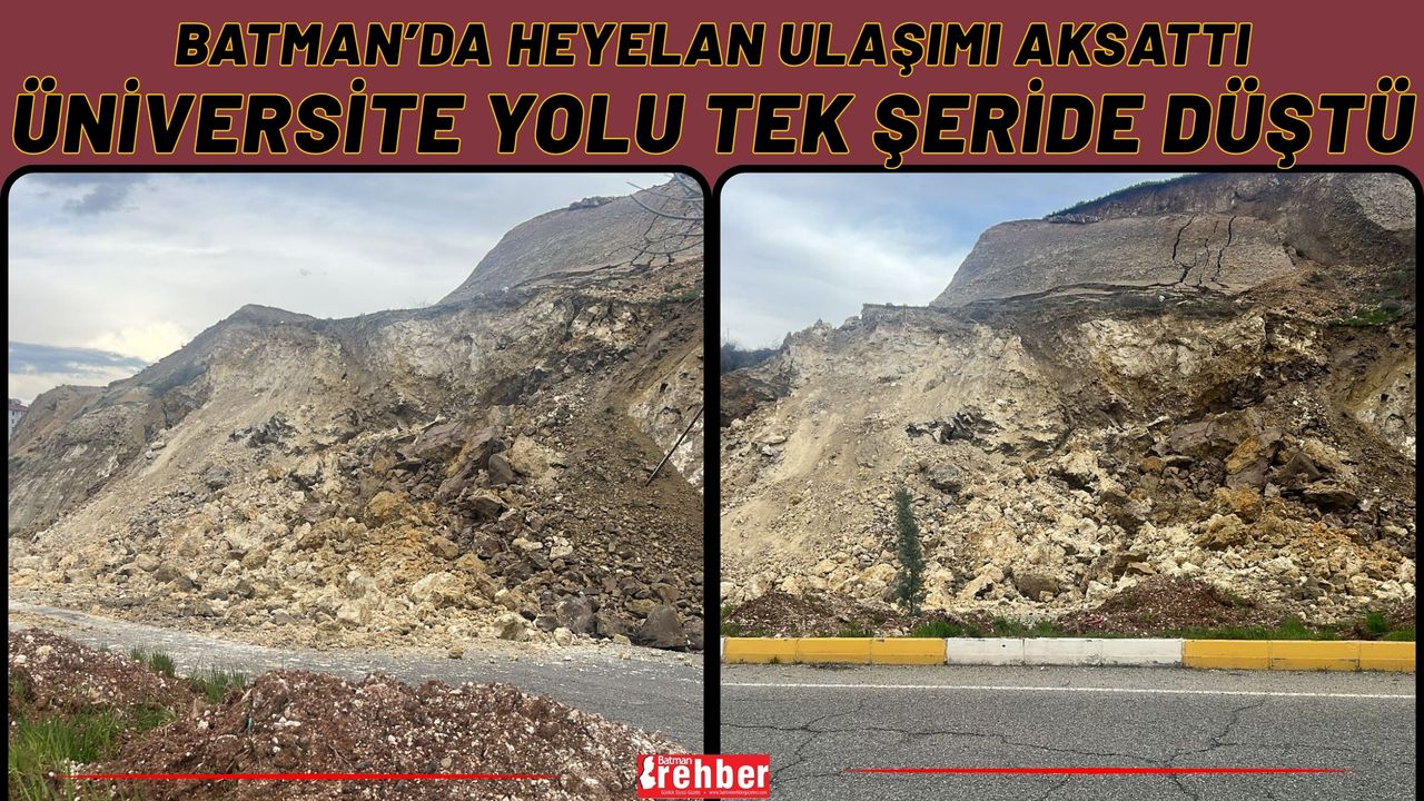 Batman’da etkili olan yağışların ardından Batman Üniversitesi Batı Raman Yerleşkesi yolunda heyelan meydana geldi. Yol kenarındaki dik yamaçtan kopan dev kaya parçaları ve toprak yığını yola savruldu.