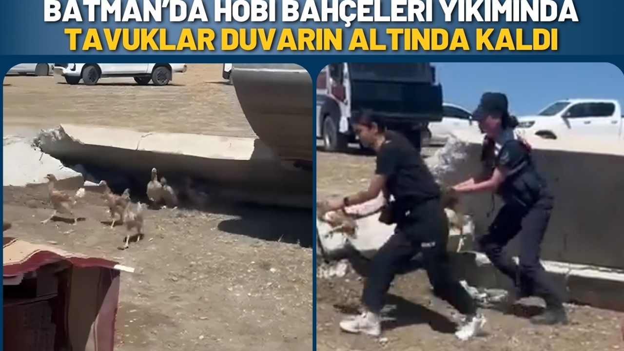 Batman merkeze bağlı Binatlı Bileyder Köyü’nde sabah saatlerinde başlatılan hobi bahçesi yıkımları sırasında büyük bir skandal yaşandı. İş makinelerinin dikkatsiz çalışması nedeniyle tavuklar duvarın altında kalarak ölüm tehlikesi atlattı. Görüntülere yansıyan olayda, duvarın yıkılmasıyla birlikte tavukların duvarın altında kaldığı, güçlükle kurtuldukları görüldü.