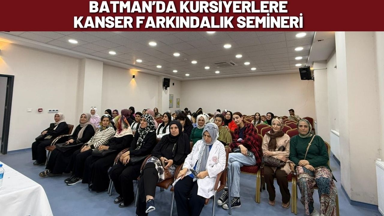 Batman Halk Eğitim Merkezi konferans salonunda gerçekleştirilen seminerde, İl Sağlık Müdürlüğü’nde görevli hekimler ve KETEM (Kanser Erken Teşhis, Tarama ve Eğitim Merkezi) personeli tarafından katılımcılara kanser türleri, erken teşhisin önemi, kanserden korunma yolları ve ücretsiz kanser tarama programları hakkında sunum yapıldı.