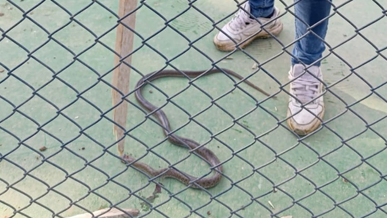 Görevli, vatandaşların ve özellikle çocukların zarar görmemesi için hızlıca müdahale ederek yılanı etkisiz hale getirdi.
