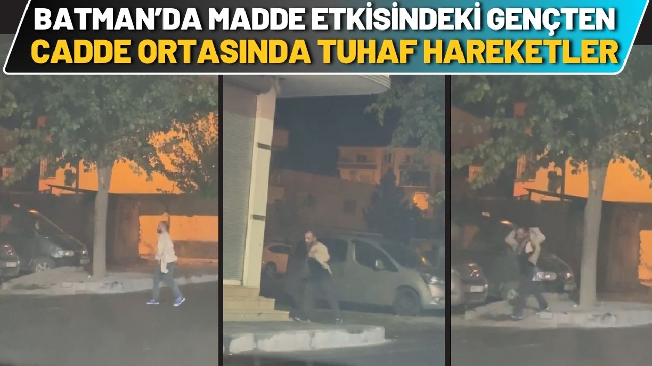Batman merkez Hürriyet Mahallesi’nde gece saatlerinde yaşanan olay hem şaşırttı hem de endişelendirdi. Kimliği belirsiz bir gencin cadde ortasında kontrolsüz hareketler sergileyerek adeta görünmeyen bir şeylerle mücadele ettiği görüntüler vatandaşları endişelendirdi. Çevredekilerin şaşkın bakışları arasında genç, zaman zaman bağırıp, ellerini havaya kaldırıp tuhaf hareketler sergiledi. Ayakta durmakta güçlük çeken gencin ara ara dengesini kaybederek sendelemeye başlaması dikkat çekti.
