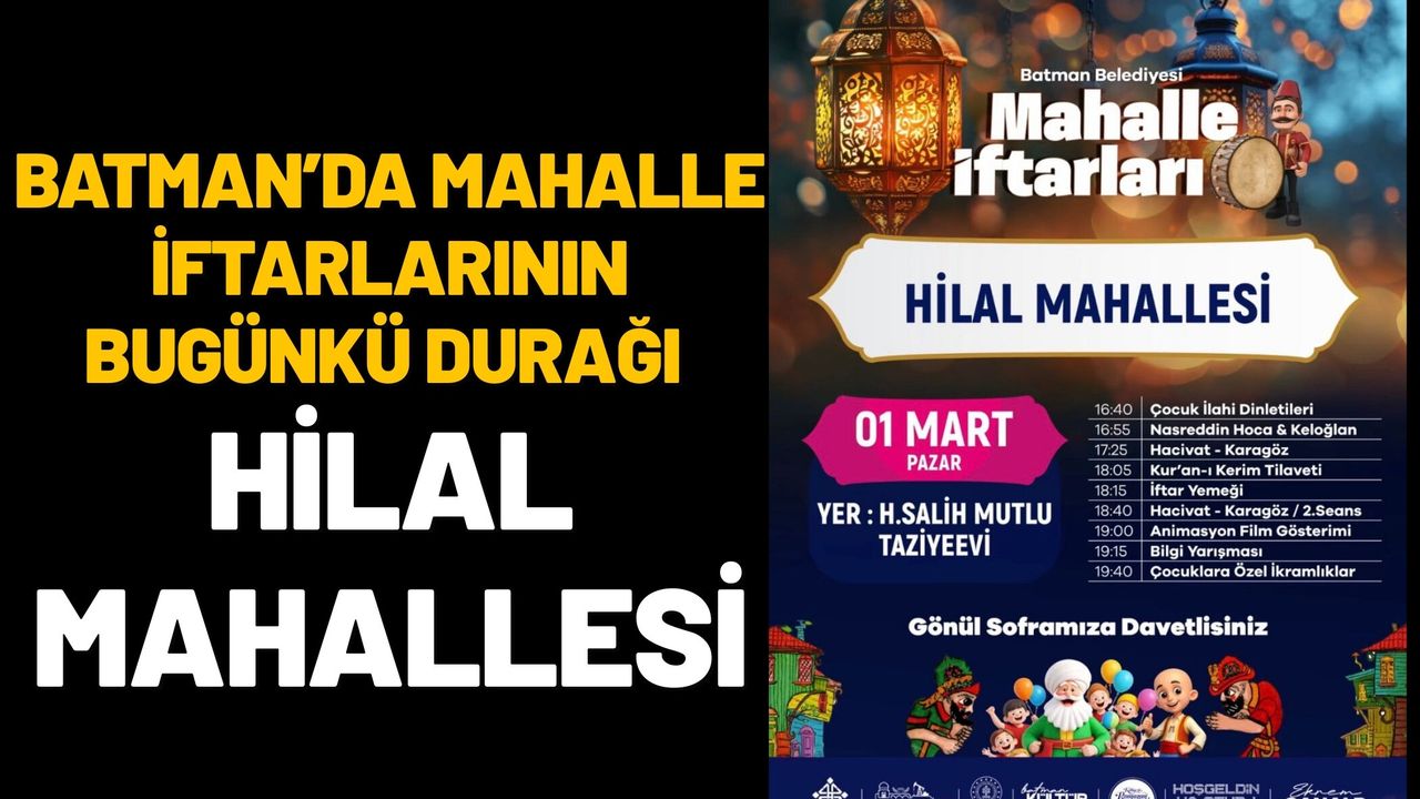 İftar programı, H. Salih Mutlu Taziyeevi’nde gerçekleştirilecek. Yetkililer, programa her yaştan vatandaşın katılım sağlayabileceğini belirtti. Etkinlik kapsamında iftar yemeğinin yanı sıra özellikle çocuklara yönelik çeşitli kültürel ve eğlenceli aktiviteler de yer alacak.