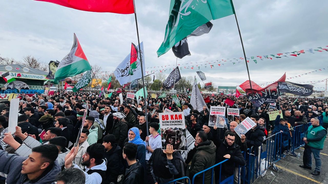 Yağmurlu havaya aldırmadan alanı dolduran Peygamber aşığı Batmanlılar büyük bir coşkuyla salavatlara, tekbirlere, ilahilere eşlik ediyor, ellerindeki tevhit bayraklarını sallayarak Peygamber Aleyhisselama olan sevdalarını dile getiriyorlar.