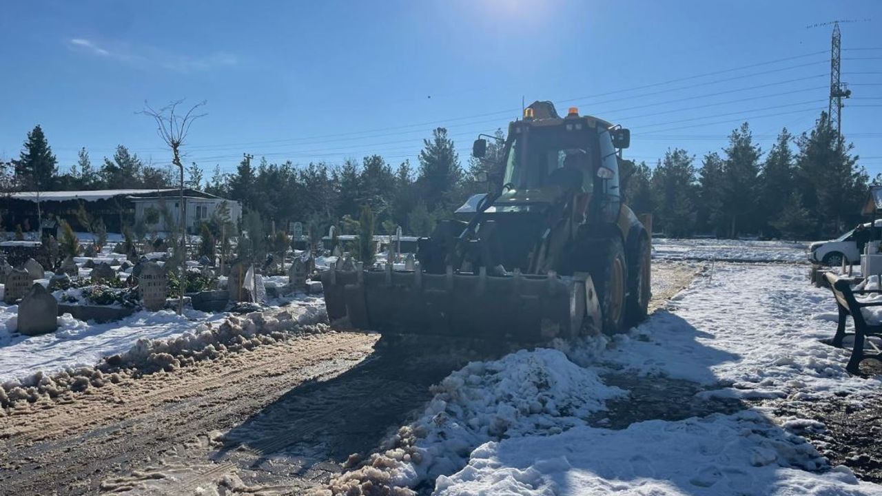 Belediye bünyesindeki Mezarlık İşleri Müdürlüğü ekipleri, kış şartlarının mezarlık ziyaretlerine engel olmaması için çalışmalarını yoğunlaştırdı. Vatandaşların ebediyete irtihal eden yakınlarını güvenle ziyaret edebilmeleri ve dini vecibelerini huzur içinde yerine getirebilmeleri adına; mezarlık yolları, giriş kapıları ve yürüyüş yollarında biriken karlar temizlenerek buzlanmaya karşı önlemler alındı.