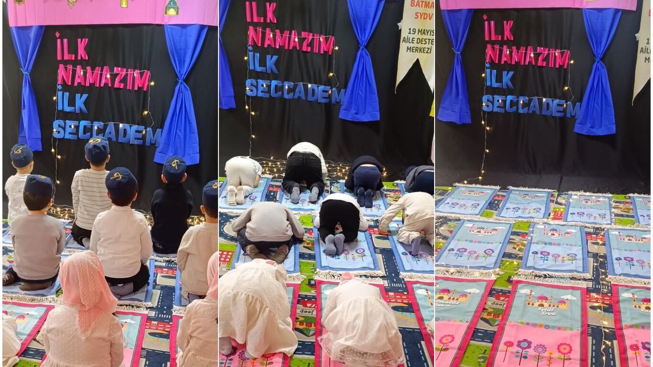 Batman Valiliği Sosyal Yardımlaşma ve Dayanışma Vakfı bünyesinde faaliyet gösteren 19 Mayıs Aile Destek Merkezi'nde 4-6 yaş Kur'an'ı Kerim Kursu öğrencilerine yönelik 'İlk namazım ilk seccadem' etkinliği düzenlendi.