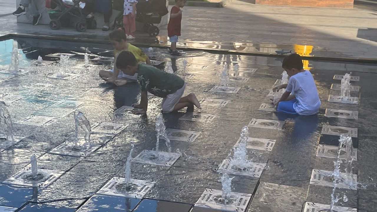 Elbiseleriyle birlikte fiskiyelerin serin sularına giren minikler, kimi zaman birbirine su sıçratarak, kimi zaman fıskiyelerin altında kahkahalar atarak doyasıya eğlendi. Bu keyifli manzaralar ise caddeden geçen vatandaşların yüzünde gülümseme oluşturdu. Yaz sıcağında miniklerin suyla buluşması hem şehre hem de izleyenlere ayrı bir serinlik kattı.