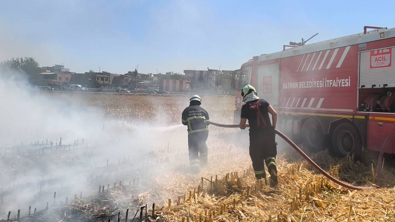 Batman Merkez Huzur Mahallesi 562. Sokak'ta bulunan biçilmiş bir mısır tarlasında, henüz bilinmeyen bir nedenle yangın çıktı.