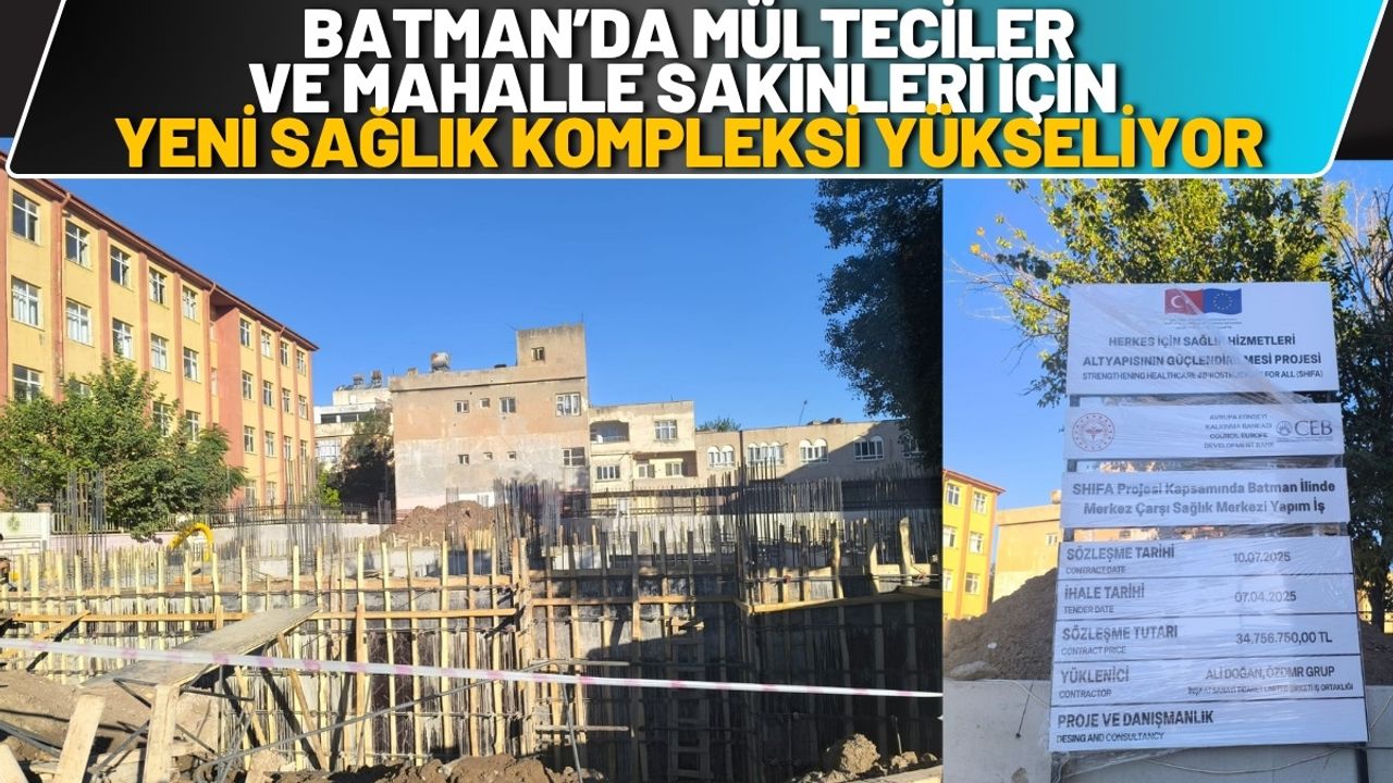 Batman Merkez Çarşı Mahallesi’nde, Mezopotamya Mesleki ve Teknik Anadolu Lisesi bitişiğindeki alanda yeni bir sağlık merkezi inşaatı başlatıldı. “Herkes İçin Sağlık Hizmetleri Altyapısının Güçlendirilmesi (SHIFA)” Projesi kapsamında yürütülen çalışmada hem göçmen sağlığına hem de bölge halkına hizmet verecek modern bir tesis inşa ediliyor.