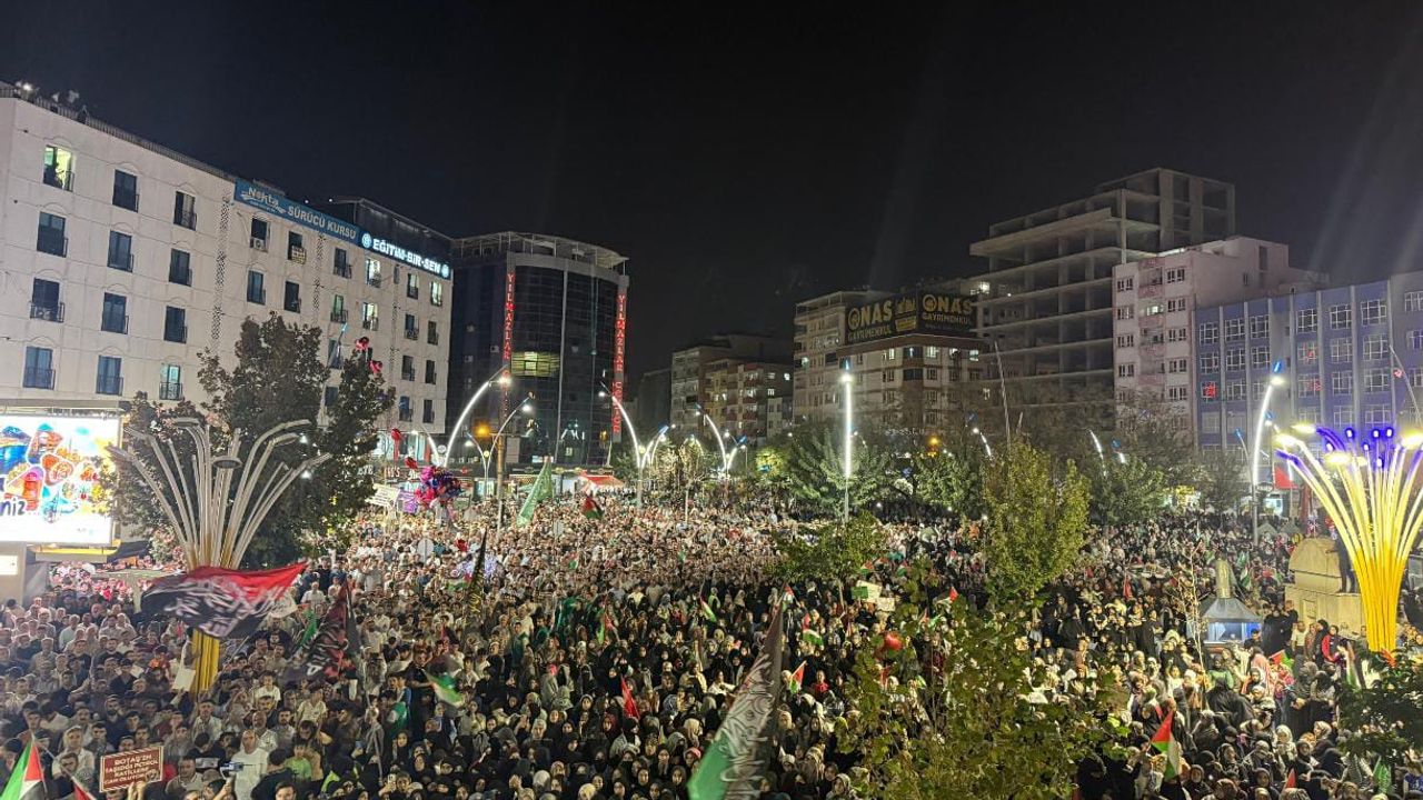 Batman'da faaliyet yürüten sivil toplum kuruluşlarının koordinasyonu ile binlerce Batmanlı vatandaş, 7 Ekim Aksa Tufanı'nın yıldönümünde bir araya geldi.