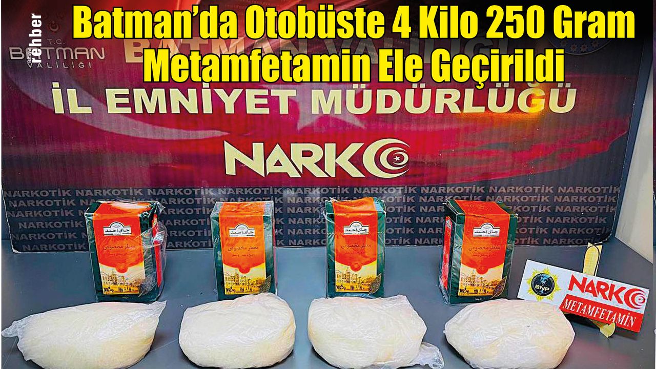 Gerçekleştirilen aramada, piyasa değeri yüksek olan 4 kilo 250 gram Metamfetamin uyuşturucu maddesi bulundu. Olayla ilgili olarak yakalanan 1 şüpheli şahıs, emniyetteki işlemlerinin ardından adli makamlara sevk edildi.