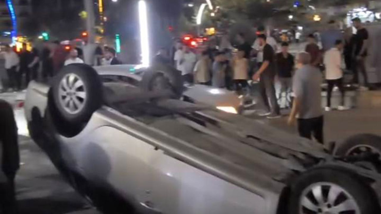 Çarpışmanın etkisiyle araçlardan biri takla attı.