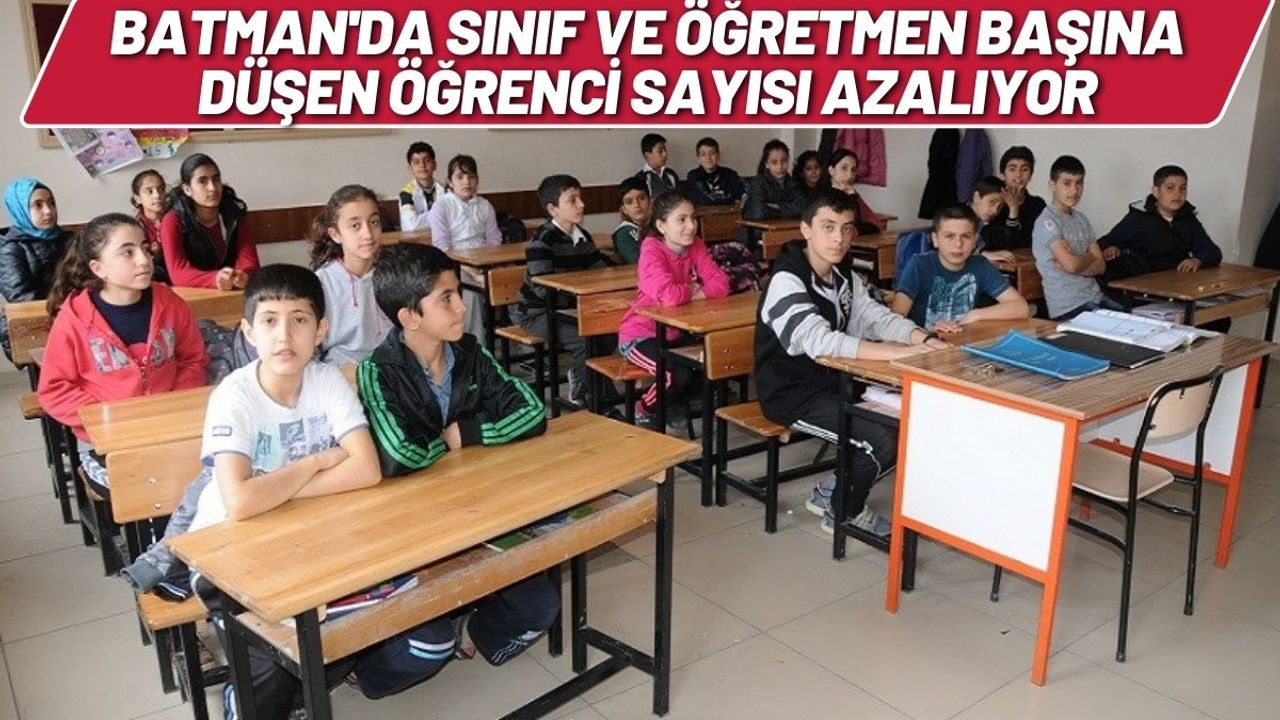 Türkiye İstatistik Kurumu Batman'daki eğitim kurumu verilerine göre Batman'da her geçen yıl sınıf başına düşen öğrenci sayısı azalıyor.