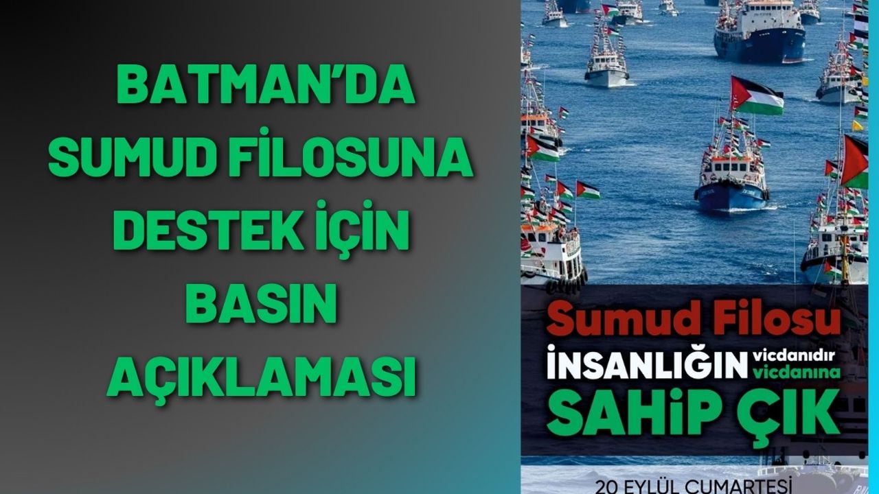 Batman’daki sivil toplum kuruluşları da “Sumud Filosuna” destek için basın açıklaması yapacak. Basın açıklamasına Batmanlıların büyük katılım göstermesi bekleniyor.