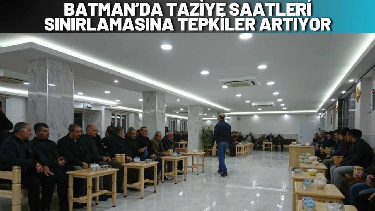 Batman’da müftülük ve bazı kurumlar tarafından alınan taziyeevlerine saat sınırlaması kararı, kentte geniş yankı uyandırdı. Alınan karar doğrultusunda taziyelerin akşam saat 17.00’de sona erdirilmesi öngörülürken, bu uygulama vatandaşlar ve sivil toplum temsilcileri tarafından tepkiyle karşılandı.