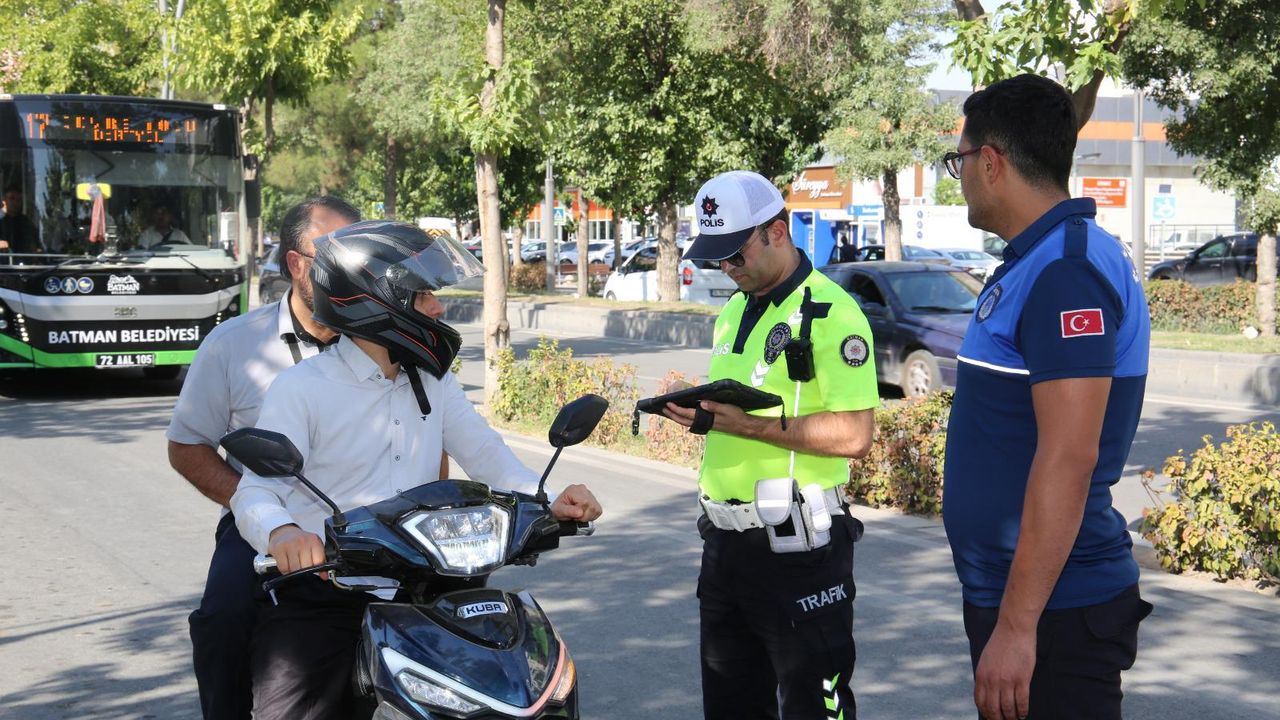 Batman’da trafik düzeni ve yol güvenliğini sağlamak amacıyla yapılan denetimlerde, kask kullanımı, sürücü belgesi, ruhsat, plaka ve durak kuralları titizlikle kontrol edildi. Kurallara uymayan sürücülere cezai işlem uygulanırken, vatandaşlara güvenli yolculuk ve sürüş konusunda bilgilendirmeler yapıldı.