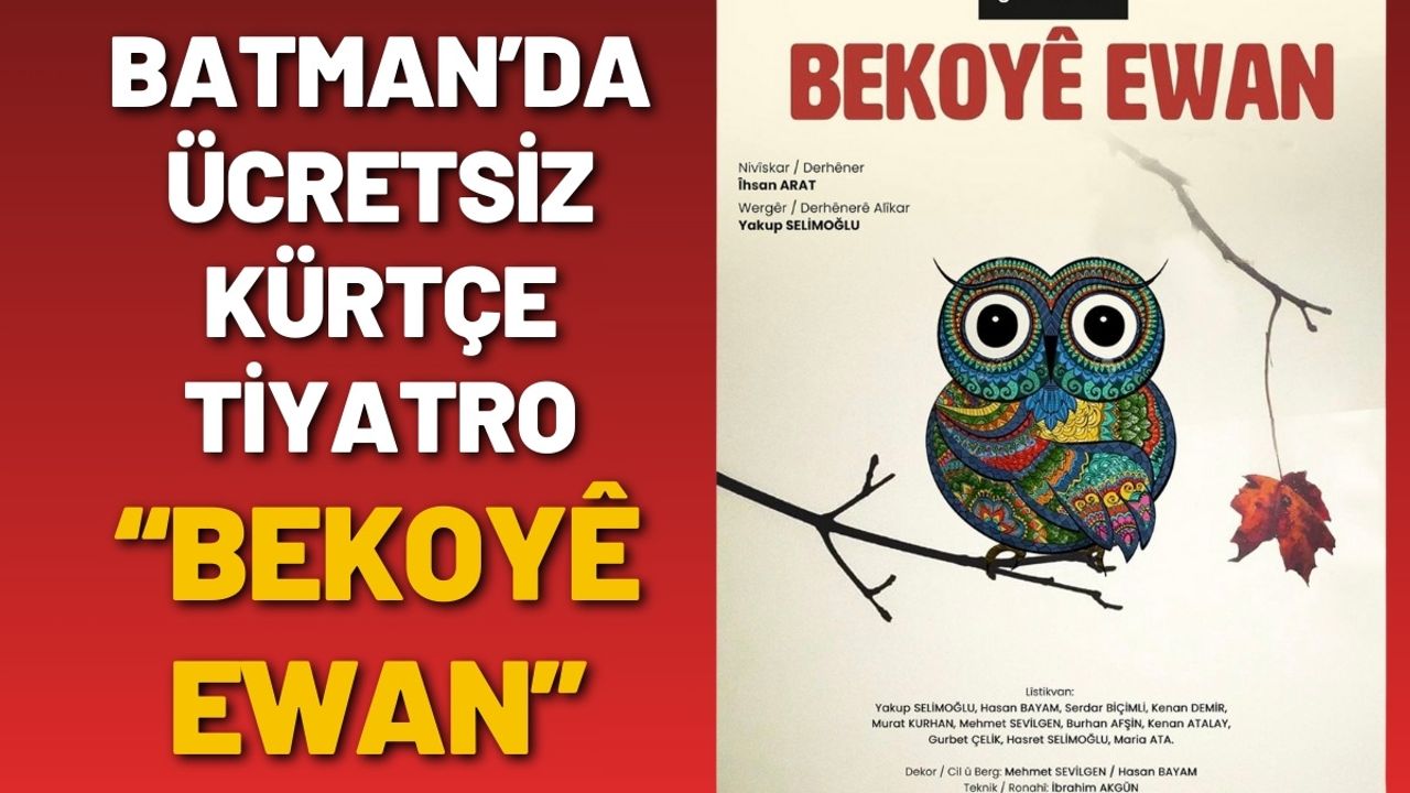 Batman, kültür ve sanat dolu günler yaşamaya devam ediyor. Bu yıl ikincisi düzenlenen Batman Tiyatro Festivali, Kürtçe tiyatroseverleri sevindirecek özel bir gösteriyle devam ediyor. Yeni Sahne tarafından sahnelenen “Bekoyê Ewan” 24 Kasım 2025 tarihinde ücretsiz olarak izleyiciyle buluşacak.