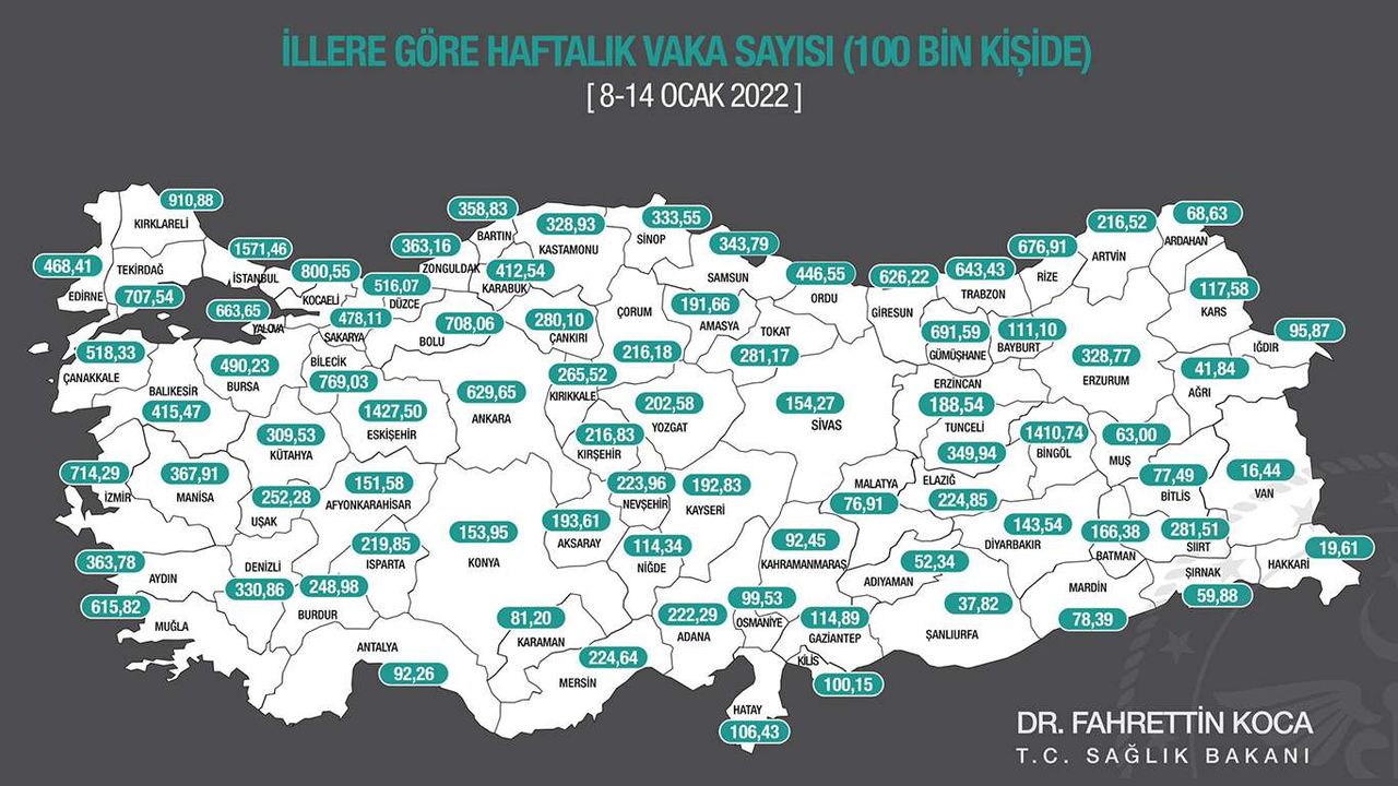 sayısı açıklandı. Sağlık Bakanı Fahrettin Koca, illere göre haftalık vaka