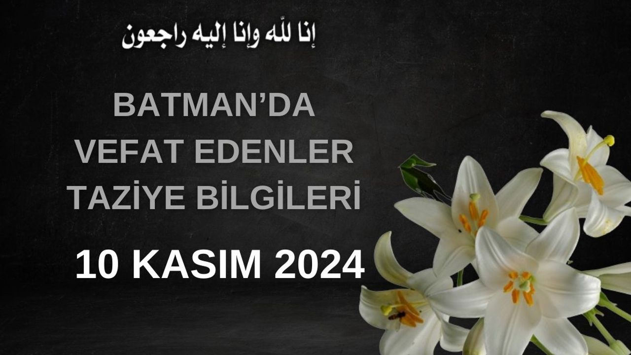 Batman'da hayatını kaybedenlerin taziye bilgileri. 10 Kasım 2024 Pazar günü itibariyle Batman'da vefat edenlerin taziyeleri ve taziyeler ile ilgili bilgiler.