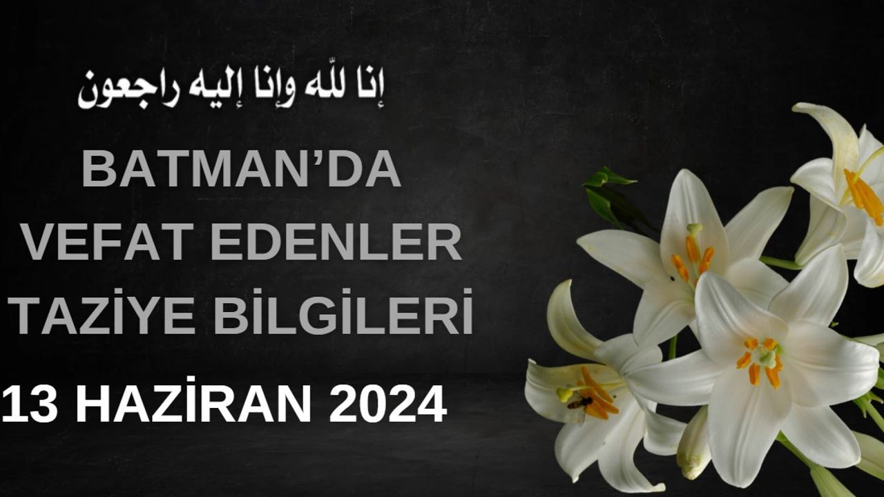 Haziran Perşembe günü itibariyle Batman'da vefat edenlerin taziyeleri ve