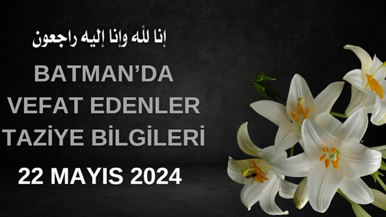 bilgileri. 22 Mayıs 2024 Çarşamba günü itibariyle Batman'da taziyesi devam