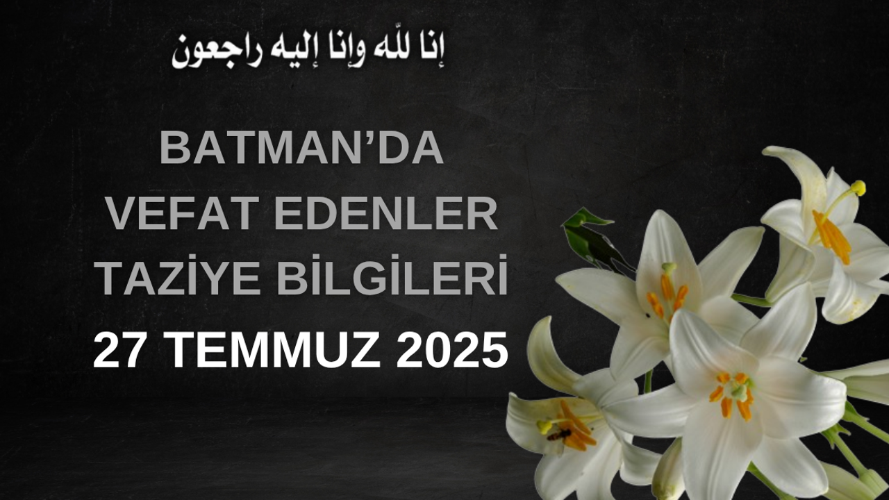 Batman'da hayatını kaybedenlerin taziye bilgileri. 27 Temmuz 2025 Pazar günü itibariyle Batman'da vefat edenlerin taziyeleri ve taziyeler ile ilgili bilgiler.
