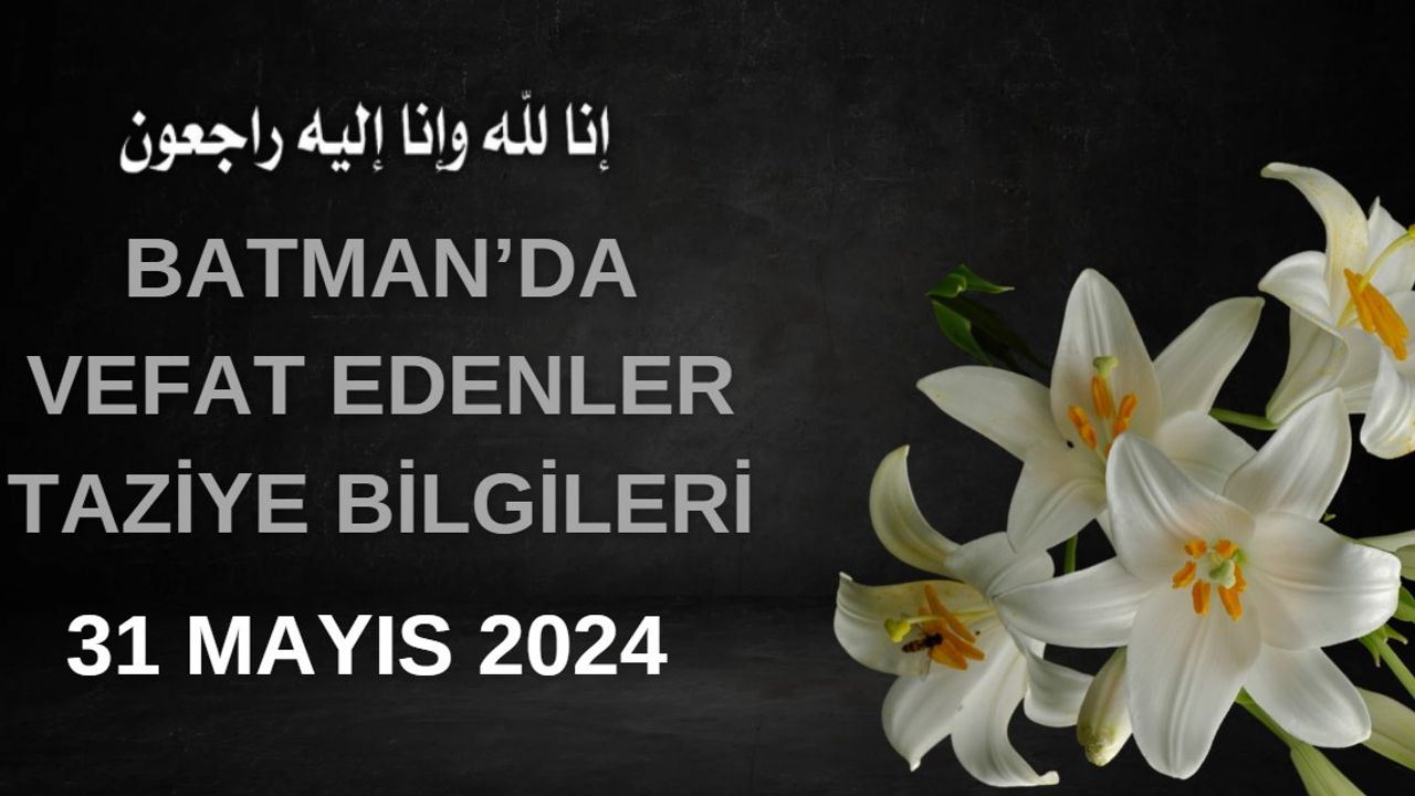 Batman'da hayatını kaybedenlerin taziye bilgileri. 31 Mayıs Cuma
