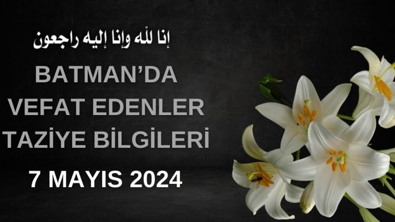 bilgileri. 7 Mayıs 2024 Salı günü itibariyle Batman'da taziyesi devam edenler