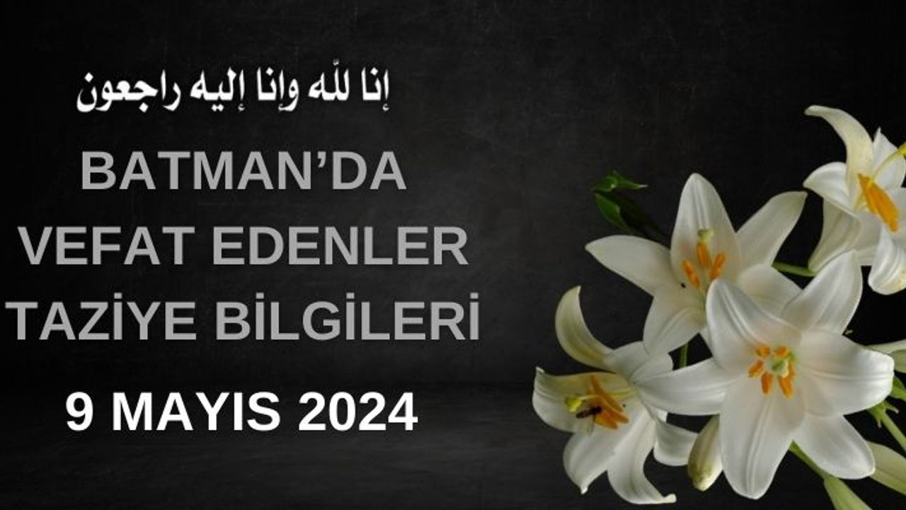 Mayıs 2024 Perşembe günü itibariyle Batman'da taziyesi devam edenler ve taziyeleri