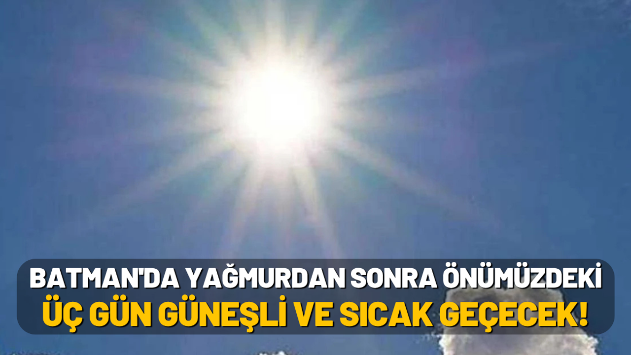 Perşembe ve Cuma günleri de benzer bir hava hakim olacak. Her iki gün de güneşli bir gökyüzüyle karşılaşacak olan Batmanlıları öğle saatlerinde 37 ila 39 santigrat derece aralığında bir sıcaklık bekliyor. Geceleri ise hava serinleyecek ve en düşük sıcaklıklar 21 ila 22 derece civarında olacak.