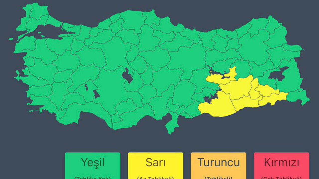 İçişleri Bakanlığı, Meteoroloji Genel Müdürlüğü'nden alınan son bilgilere ilişkin uyarı yayımladı. Yapılan açıklamaya göre, bugün Şanlıurfa, Elazığ'ın doğusu, Diyarbakır, Batman, Siirt, Mardin ve Şırnak'ta aralıklı ve yerel olarak kuvvetli gök gürültülü sağanak yağış bekleniyor.