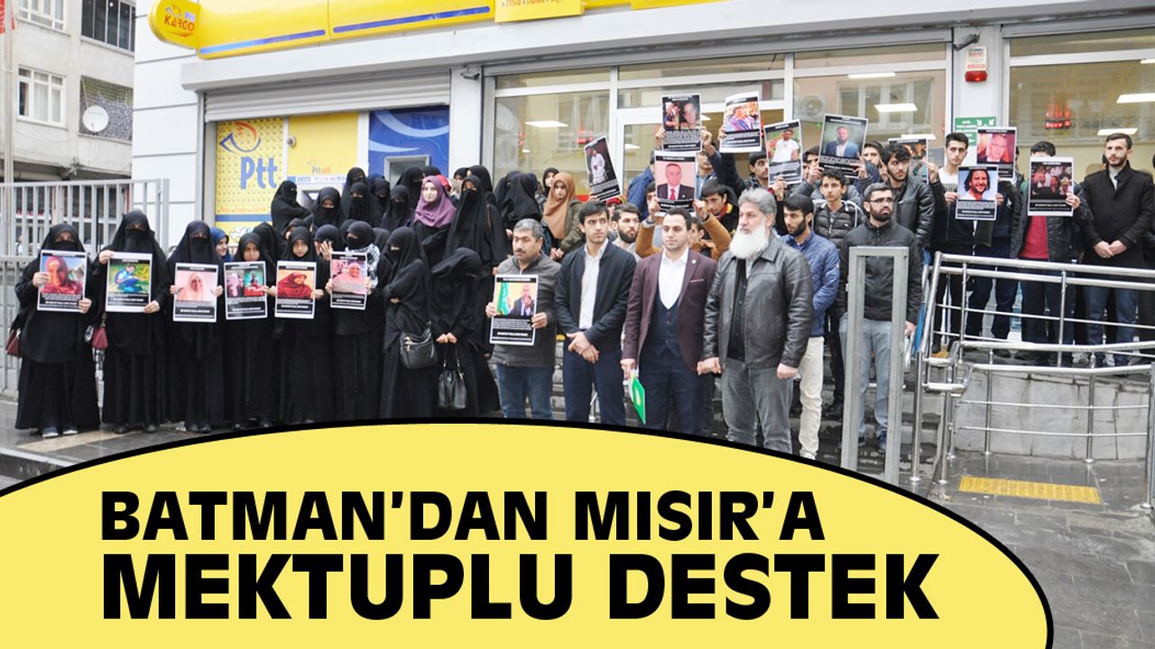 HÜDA PAR Batman Gençlik Kolları Başkanlığı tarafından Mısır’da başta Muhammed Biltacı olmak üzere haksız yere zindanda tutulan Müslümanların yaşadığı zulüm ve sıkıntılara dikkat çekmek amacıyla basın açıklaması düzenlenip cezaevinde tutulan mazlumlara mektup gönderildi.