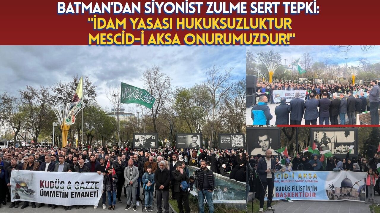 Batman’da Atatürk Parkı yanındaki Yılmaz Güney sergi alanında Batman Sivil Toplum Kuruluşlarının çağrısıyla bir araya gelen binlerce Batmanlı, siyonist işgal rejiminin Filistinli esirler için çıkardığı sözde "idam yasasını" protesto etti.