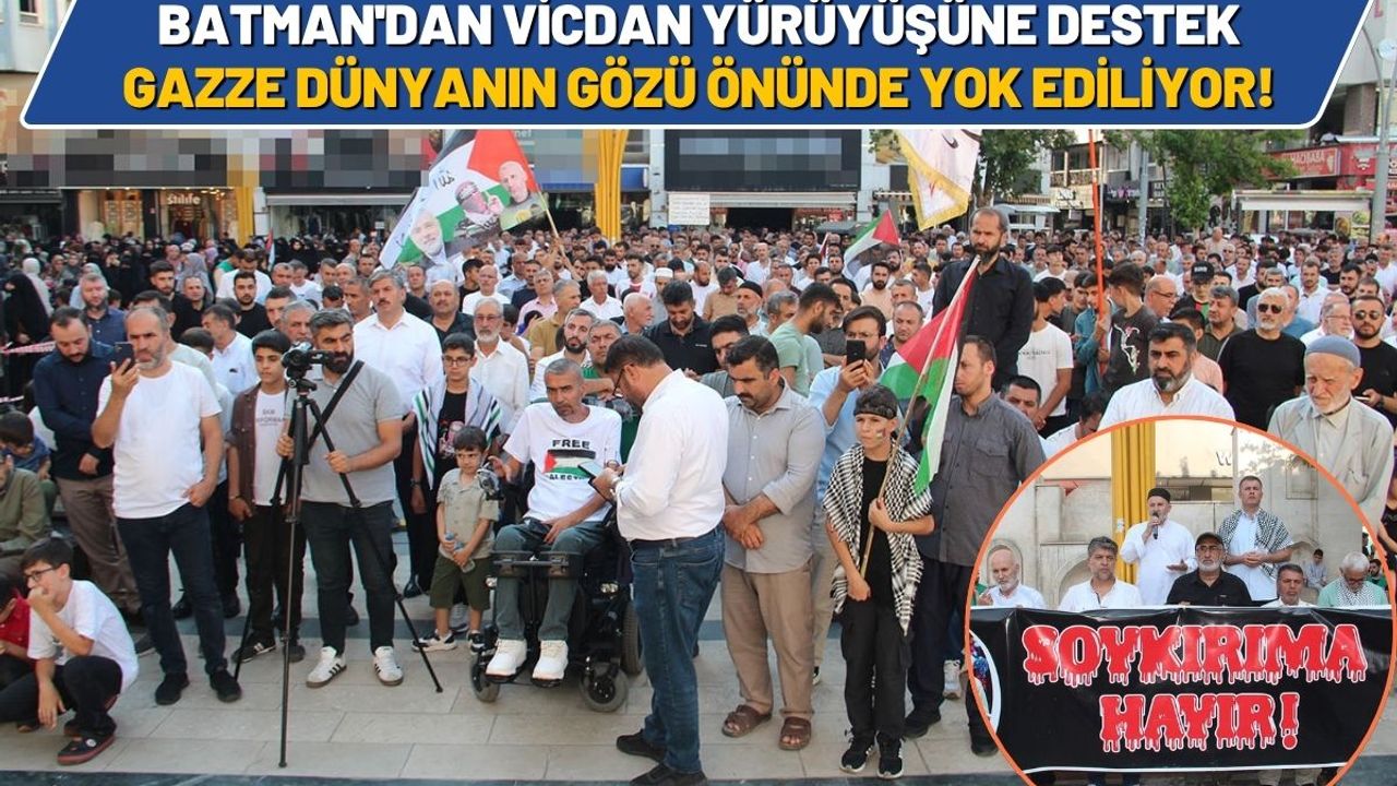 Batman’daki sivil toplum kuruluşları, Gazze’de yaşanan insanlık dışı saldırılara karşı düzenlenen Küresel Vicdan Yürüyüşü’ne geniş katılımlı bir basın açıklamasıyla destek verdi. Etkinlikte İsrail ve destekçilerine karşı sert mesajlar verildi.