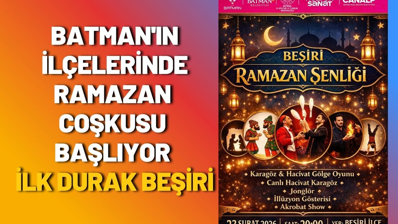 "5 İlçede 5 Ramazan Şenliği" temasıyla hazırlanan organizasyonun ilk durağı Beşiri ilçesi olarak belirlendi. Beşirili vatandaşları eski Ramazan akşamlarına götürecek ve özellikle çocuklara unutulmaz anlar yaşatacak olan etkinlikler, görsel bir şölene sahne olacak.
