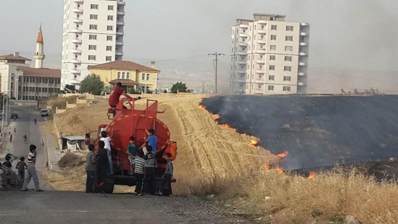 Yakılan anız yangınını gören çevre sakinlerinin haber vermesi üzerine olay yerine gelen itfaiye ekipleri, saatlerce süren çalışmanın ardından yangının büyümesini önledi.