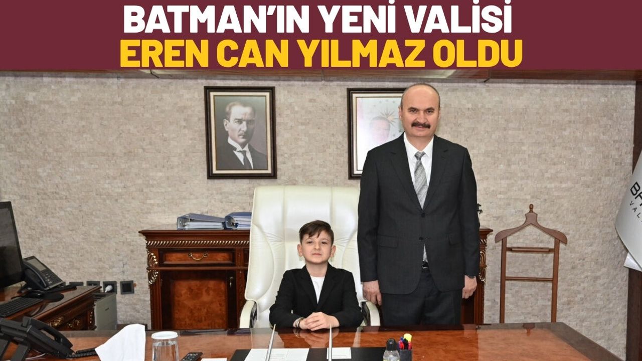 Valilik koltuğuna oturan minik Eren Can, makam devir teslim töreninde heyecanını gizleyemedi. Temsili Vali Eren Can Yılmaz, görevi devraldıktan sonra çocukların eğitimi, oyun alanlarının artırılması ve Batman’ın geleceğine dair çocuk gözüyle vizyonunu paylaştı. Vali Ekrem Canalp ise geleceğin teminatı olan çocukların her zaman yanında olduklarını belirterek, tüm çocukların bayramını kutladı.