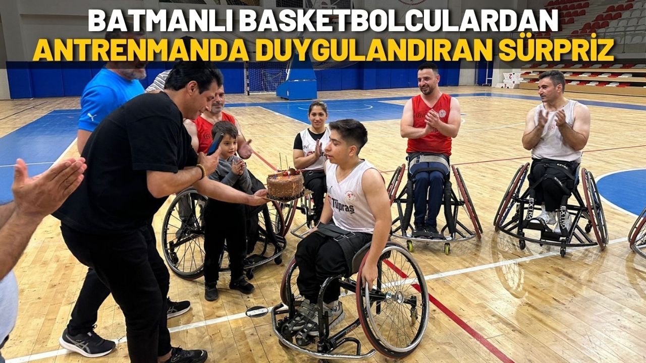 19 Mayıs Spor Salonu’nda yapılan idmanda, antrenman başlamadan hemen önce basketbolcular ve teknik heyet sahaya pasta ile çıkarak Mustafa Üzümcü’yü şaşırttı. Arkadaşlarının jesti karşısında büyük mutluluk yaşayan genç basketbolcu, duygu dolu anlar yaşadı.