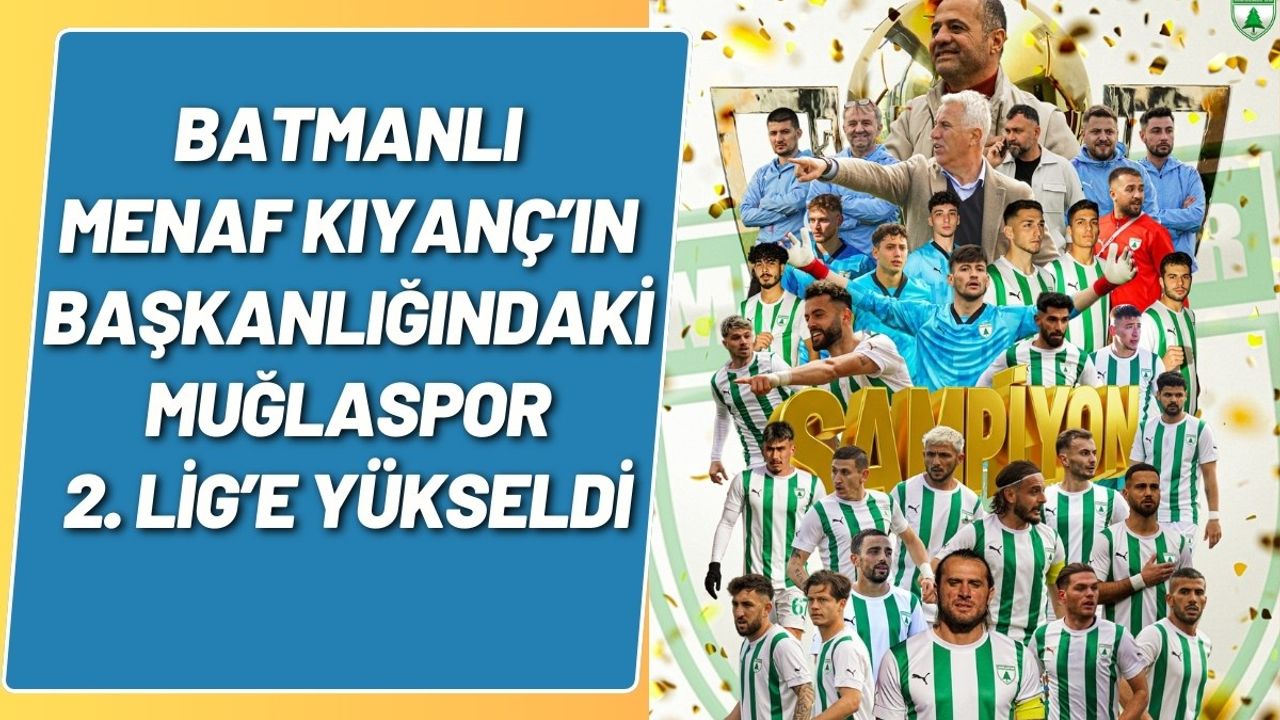Muğlaspor, deplasmanda Silivrispor’u 4-0 gibi net bir skorla mağlup ederek 2. Lig'e yükselmeyi garantiledi. Bu büyük başarı, kulüp başkanlığını Batmanlı iş insanı Menaf Kıyanç’ın yaptığı Muğlaspor camiasında büyük sevinçle karşılandı.