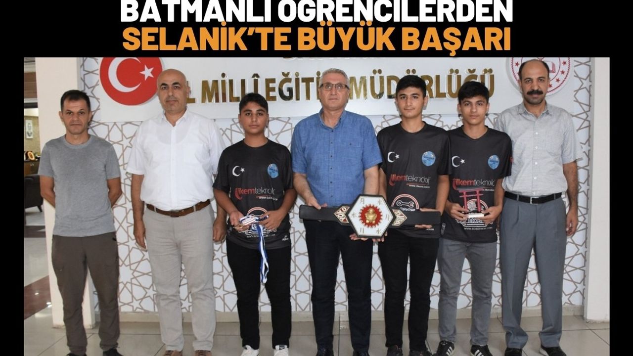 Yunanistan’ın Selanik şehrinde düzenlenen Uluslararası Yokozuna Robot Yarışması’nda dereceye giren Batmanlı öğrenciler, İl Milli Eğitim Müdürü Yaşar Ciğer’i ziyaret etti