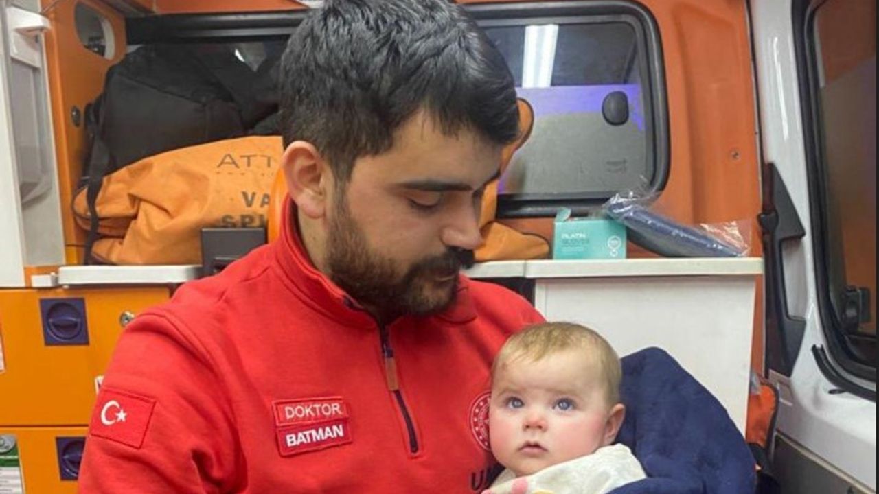 kurtarılan minik bir bebekle mutluluk resmi çekmesi ise herkesi duygulandırdı.()