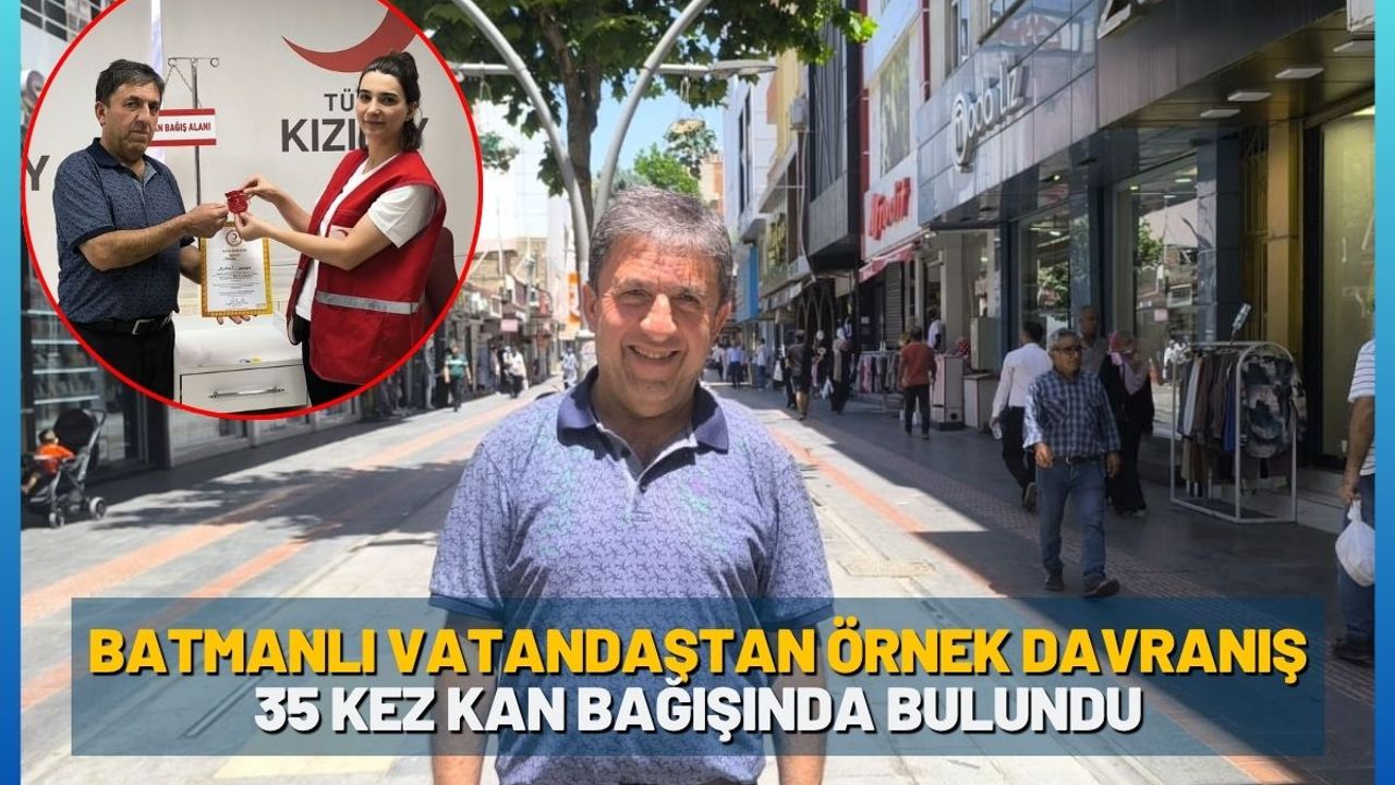 Batman’da yaşayan ve çok az bulunan B Rh negatif kan grubuna sahip olan Suphi Şimşek, bugüne kadar tam 35 defa kan bağışında bulundu. Bu sayı, sadece resmi kayıtlara geçen bağışları kapsıyor. Şimşek, bu sayının başka şehirlerdeki hastanelerde acil olarak verdiği ve kayıtlara geçmeyen bağışlarla çok daha fazla olduğunu söyledi.