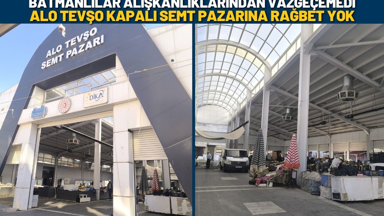 Batman’da köy ürünlerinin satıldığı ve uzun yıllardır halkın alışkanlıkla tercih ettiği Alo Tevşo pazarı, kapalı semt pazarına taşınmasına rağmen beklenen ilgiyi göremedi. Vatandaşlar, cadde boyunca açıkta kurulan tezgahlardan alışveriş yapmayı sürdürüyor.