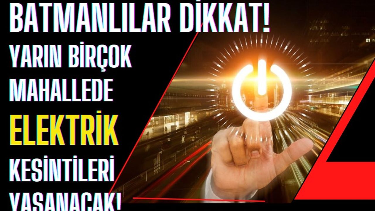 yarın Batman merkez ve ilçelerinde 09.00 – 17.30 saatleri arasında elektrik