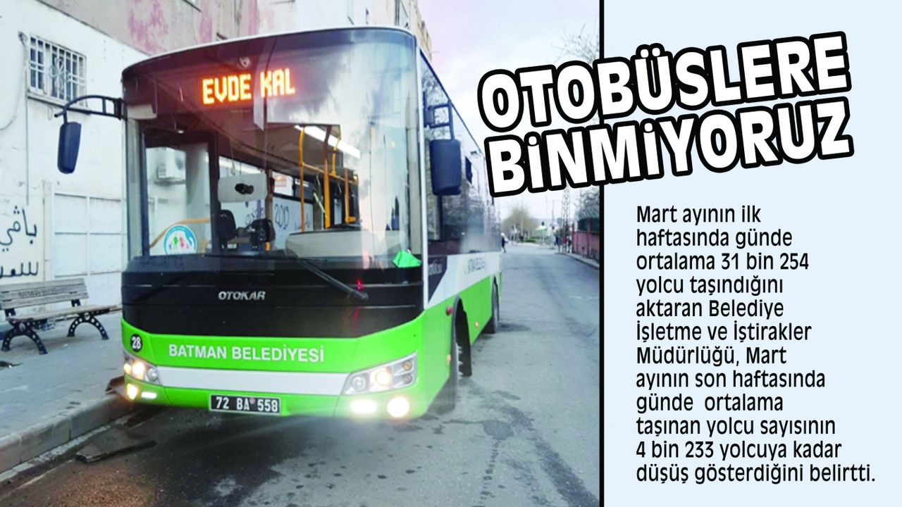 Batman Belediyesi İşletme ve İştirakler Müdürlüğü, Belediye toplu taşıma otobüslerinde koronavirüse karşı vatandaşa yönelik koruyucu önlemlerine devam ederken vatandaşların evde kalmaları yönünde de uyarılarda bulunuyor.
