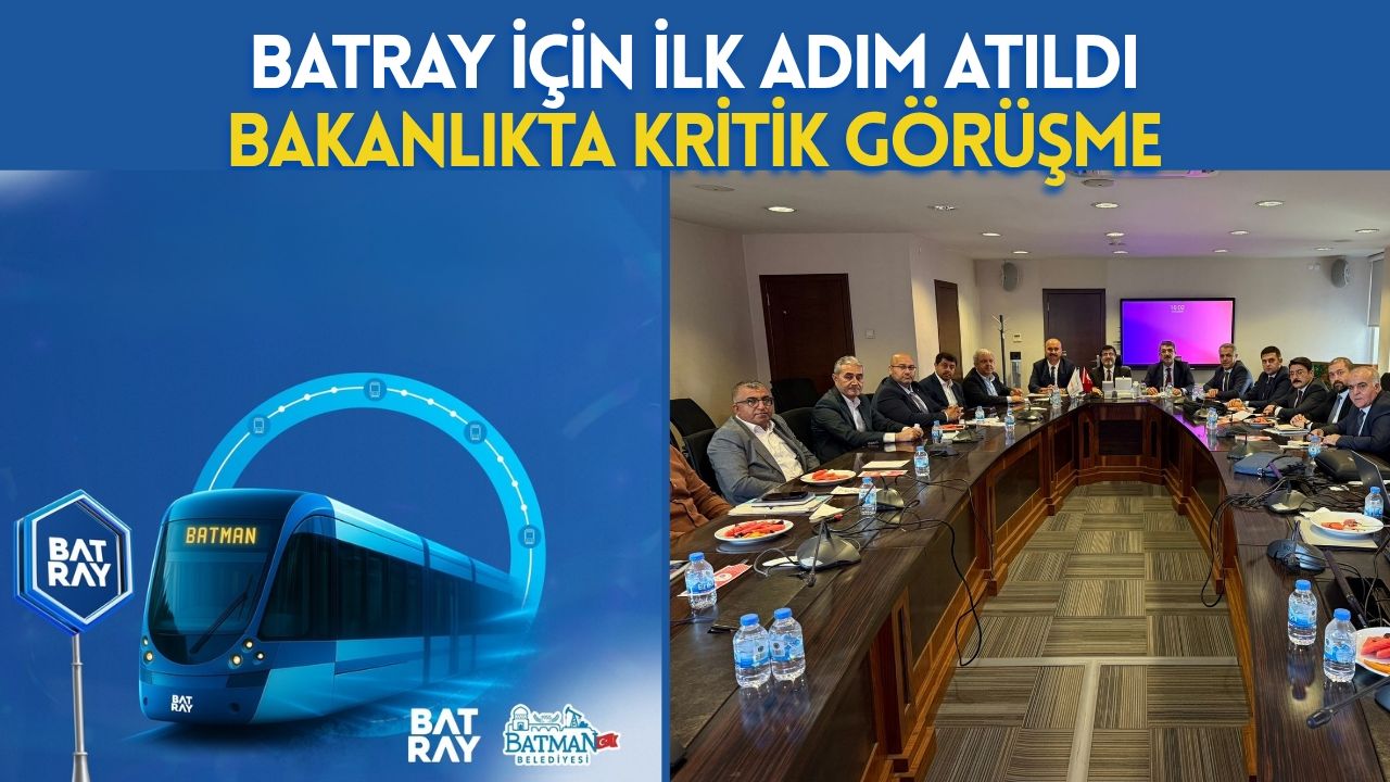 Ulaştırma ve Altyapı Bakanlığı Altyapı Yatırımları Genel Müdürlüğü’nde yapılan toplantıya; Batman Valisi ve Belediye Başkan Vekili Ekrem Canalp, Batman Milletvekili Ferhat Nasıroğlu, Altyapı Yatırımları Genel Müdürü Dr. Yalçın Eyigün, AK Parti İl Başkanı Hüseyin Şansi ve beraberlerindeki heyet katıldı. Toplantıda BATRAY projesinin teknik boyutları, süreç yönetimi ve ilk etapta izlenecek yol haritası masaya yatırıldı.