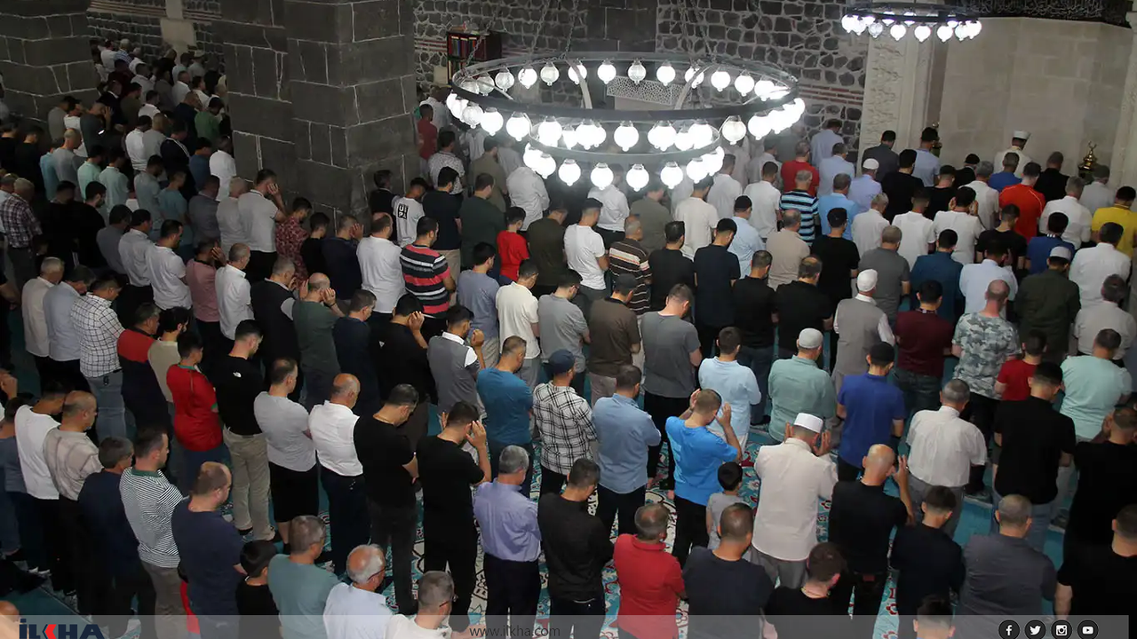Sabahın erken saatlerinde bayram namazını eda etmek üzere tarihi Ulu Camiine akın eden Diyarbakırlılar, namaz için saf tuttu.