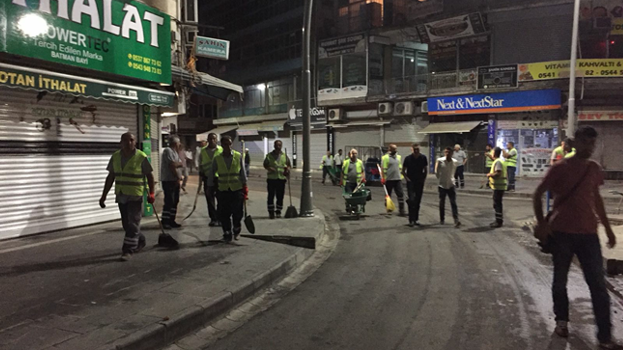 Bayram sabahına kadar devam eden çalışmalarda 30 çöp toplama aracı, 2 yol yıkama aracı, 10 yol süpürme aracı, 5 kepçe, 6 kamyon 120 yol süpürme personeli çalıştı.