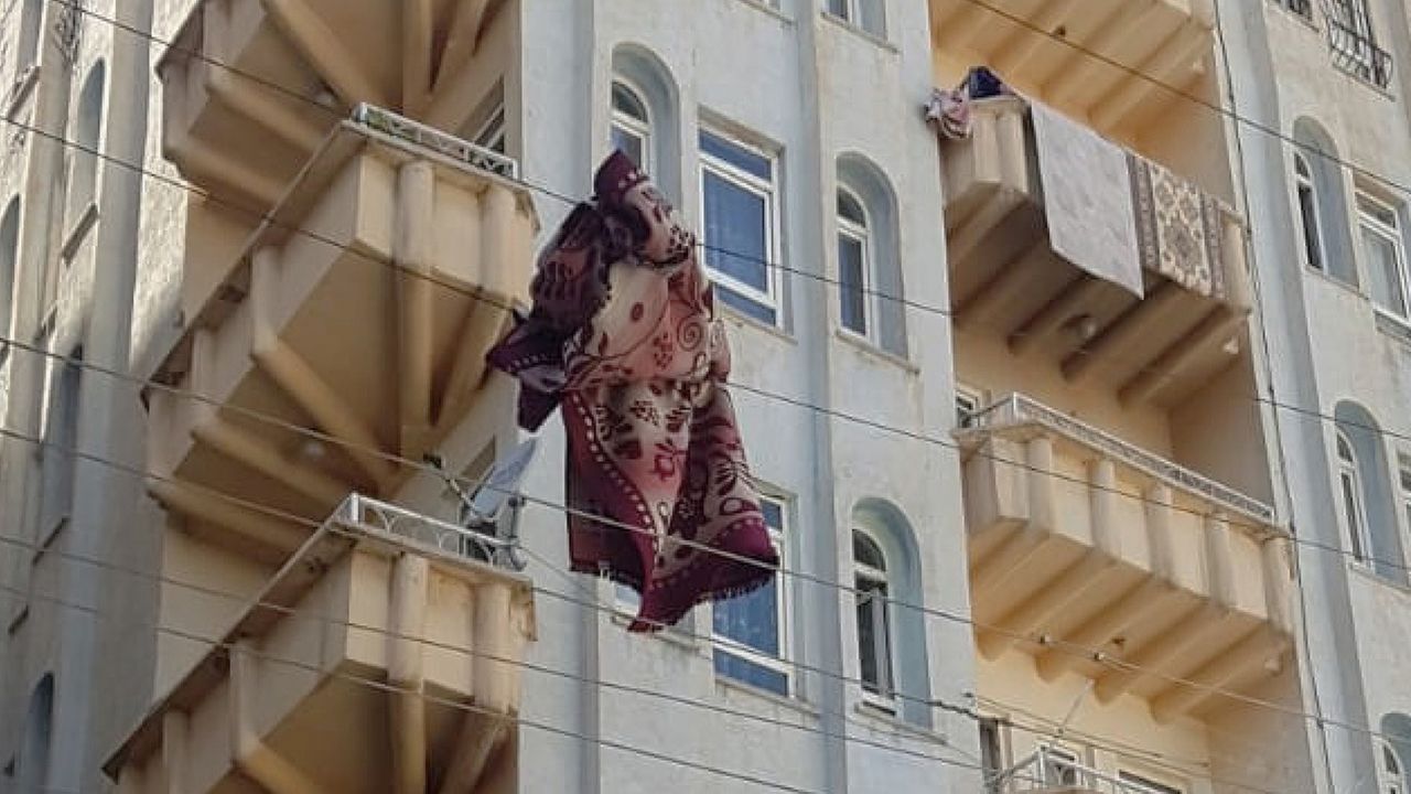 apartman balkonlarına asılan halı veya kilimlerini düşmemesi için tedbirli