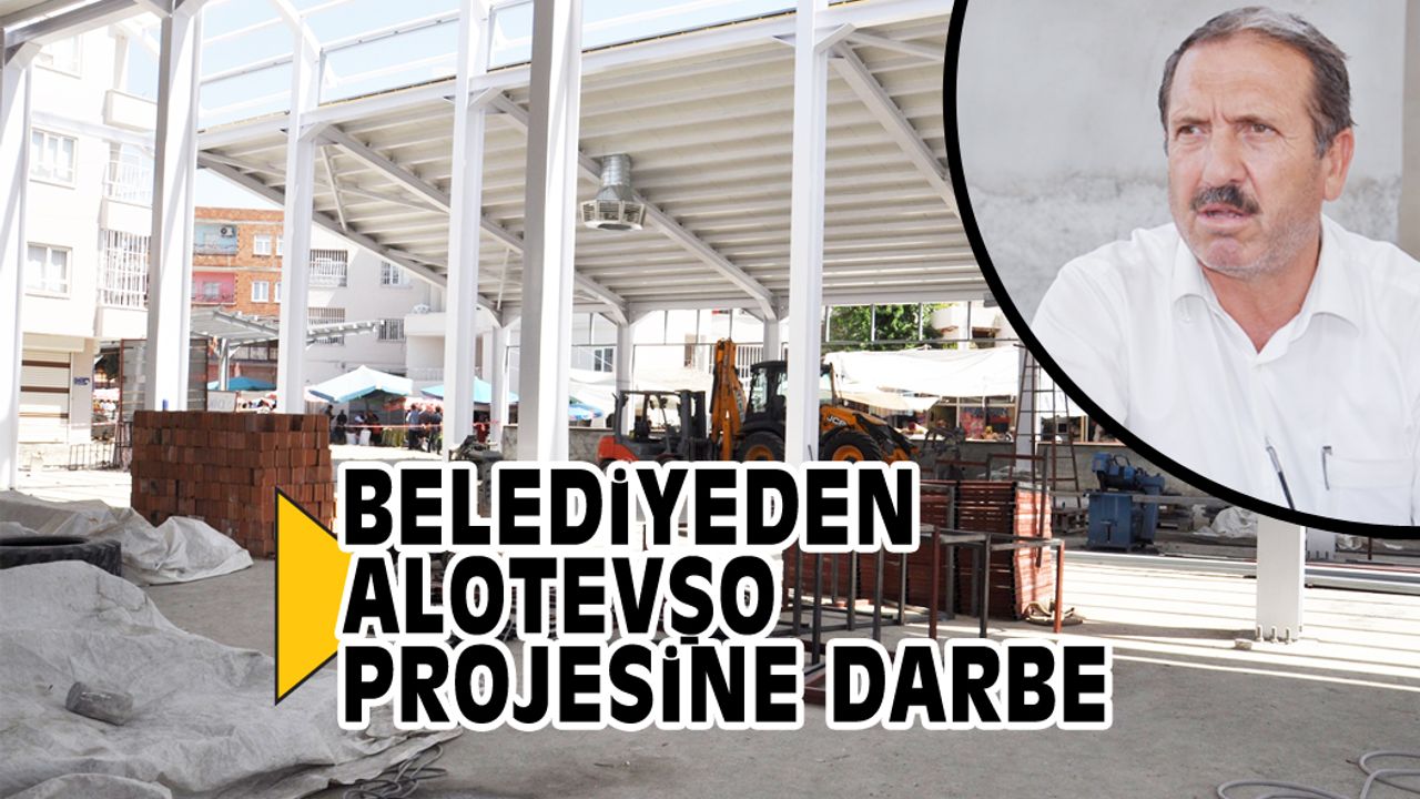 Alotevşo Pazarının yenilenme çalışması bir türlü bitmiyor. Aylardır yıkılan yerlerinin yeniden yapılmasını bekleyen esnaf büyük mağduriyetler yaşarken projeyi ortaklaşa üstlenen Acar inşaat ve Sevgili inşaat firmaları topu belediyeye atıyor.