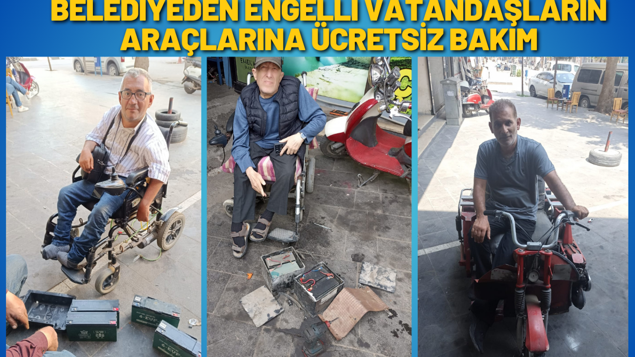 Belediyeye bağlı Makine İkmal, Bakım ve Onarım Müdürlüğü tarafından, akülü ve motorlu engelli araçlarının bakım ve onarımı ücretsiz olarak yapılıyor.